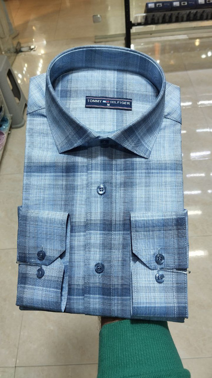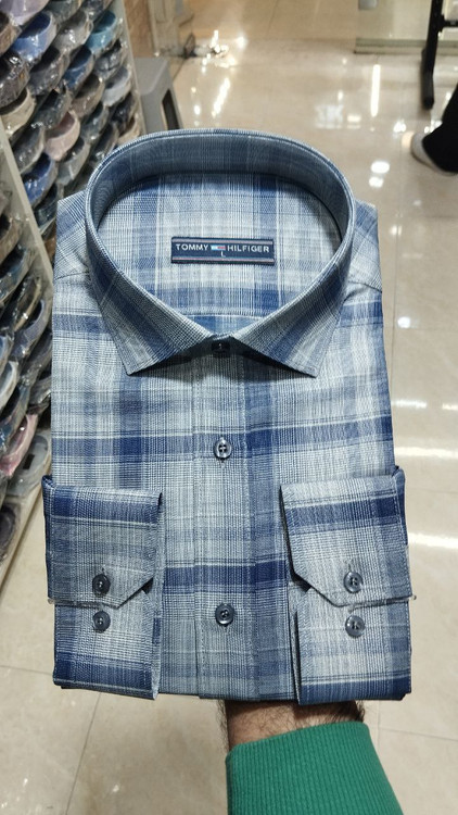 پیراهن مردانه مجلسی طرح TOMMY HILFIGER | پارچه فلورا چهارخانه دوخت صنعتی